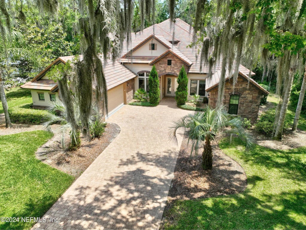 Exquisite Estate Home boasting 4,235 square feet of living and 5827 square feet of total living space on 3/4 of an acre in Wild Oaks, a private enclave of Grand Haven with a small amount of boutique homes. The home backs up to a conservation area with Oak trees over hundreds of years old. Nature surrounds the home with picturesque views especially from the upper deck where it feels like you are sitting up in the trees. This impressive home has four bedrooms, four bathrooms, an flex space bonus room for an office or hobby room on the first floor, a great room, inside laundry room, and upstairs bonus room. The expansive pool patio offers true indoor outdoor living with infinity doors, a saltwater heated pool, spa, and built in gas firepit, and an outdoor kitchen all surrounded by the nature and the beauty of the conservations that is the back yard. When you walk into the home your sight lines go straight outdoors through the infinity pocket doors. The great room, has very high ceilings with coffered ceilings. The kitchen has custom cabinetry with rare natural stunning quartzite. The primary suit, has a very large ensuite, with a walk in shower, garden soaker tub, and dual vanities with ample cabinetry; dual walk in closets, private pool access, and views throughout the primary. On the other side of the home on the main level is two bedrooms and two bathrooms. Each bedroom has its own ensuite and the west side bedroom bathroom accesses the pool. A custom built wine storage room with endless potential for additional storage. Heading up the stairs the second floor opens up to a second gathering room, wet bar with quartzite and custom cabinetry. There is a full bathroom, bedroom, and balcony that over looks the pool and views of the conservation come alive. The pool deck is an entertainers and nature lovers paradise. The pool is a saltwater, heated pool, with water features, and Led lights. There is a spa right off the pool, and easy access to the serene back yard. There are two and half garages, two full size garage bay flank to the left the home and a hobby bay half door garage flanks the right side. perfect for storing toys, tools, and lawn equipment. Wild Oaks is part of Grand Haven and along with it comes all the amenities if desired. Wild Oaks has very low HOA's and is extremely private. Located just a few miles from the beach and close to shops, and restaurants